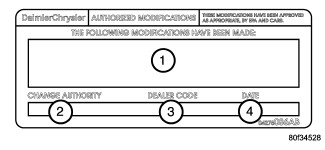 3. Type the necessary information on the "Authorized Modification Label" (P/N 04275086AB) and attach near the VECI label (See SECTION 3 - AUTHORIZED MODIFICATION LABEL for details).