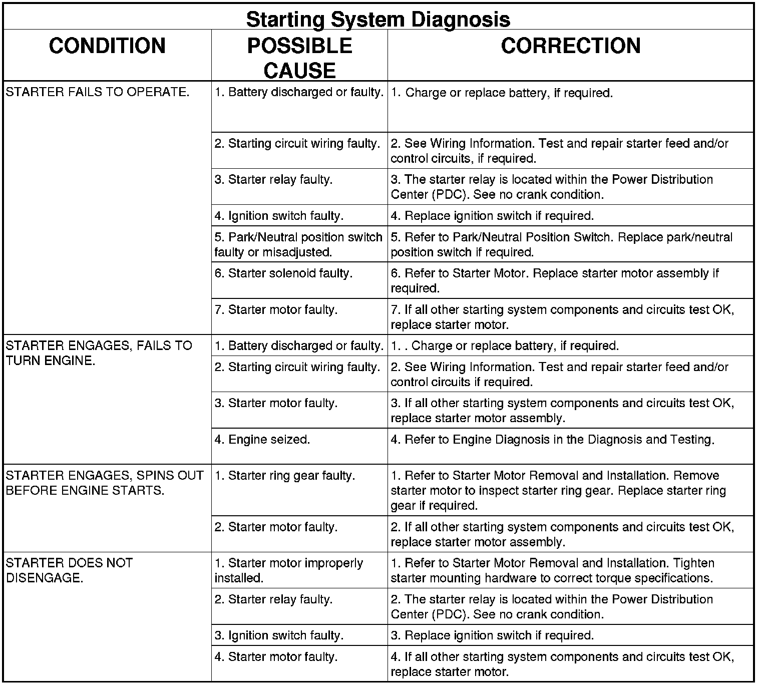 For complete starter wiring circuit diagrams, refer to Wiring Diagrams. Before removing any unit from starting system for repair or diagnosis, perform the following inspections: