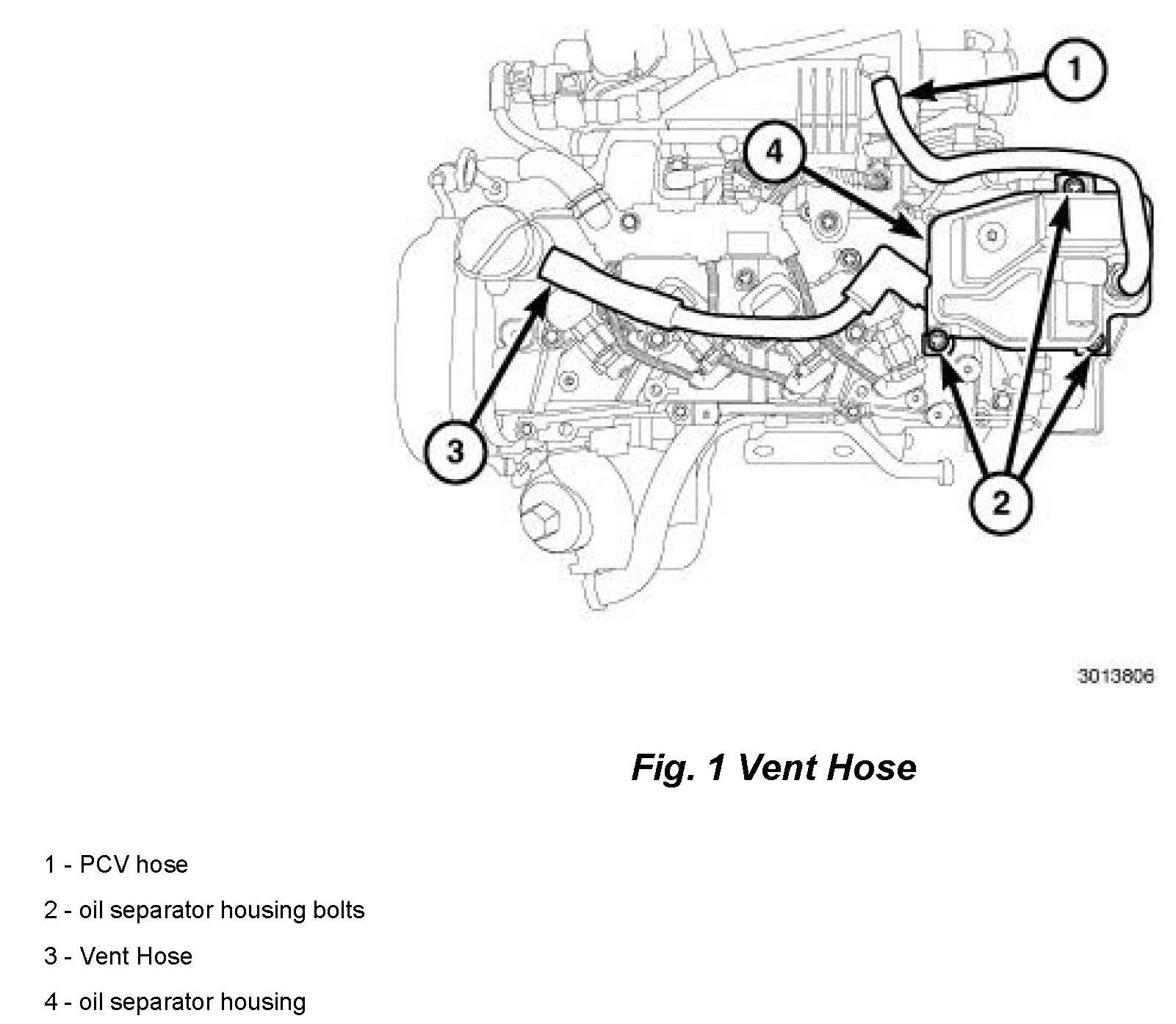 6. Disconnect the vent hose (3) from the oil filler housing (Fig 1).