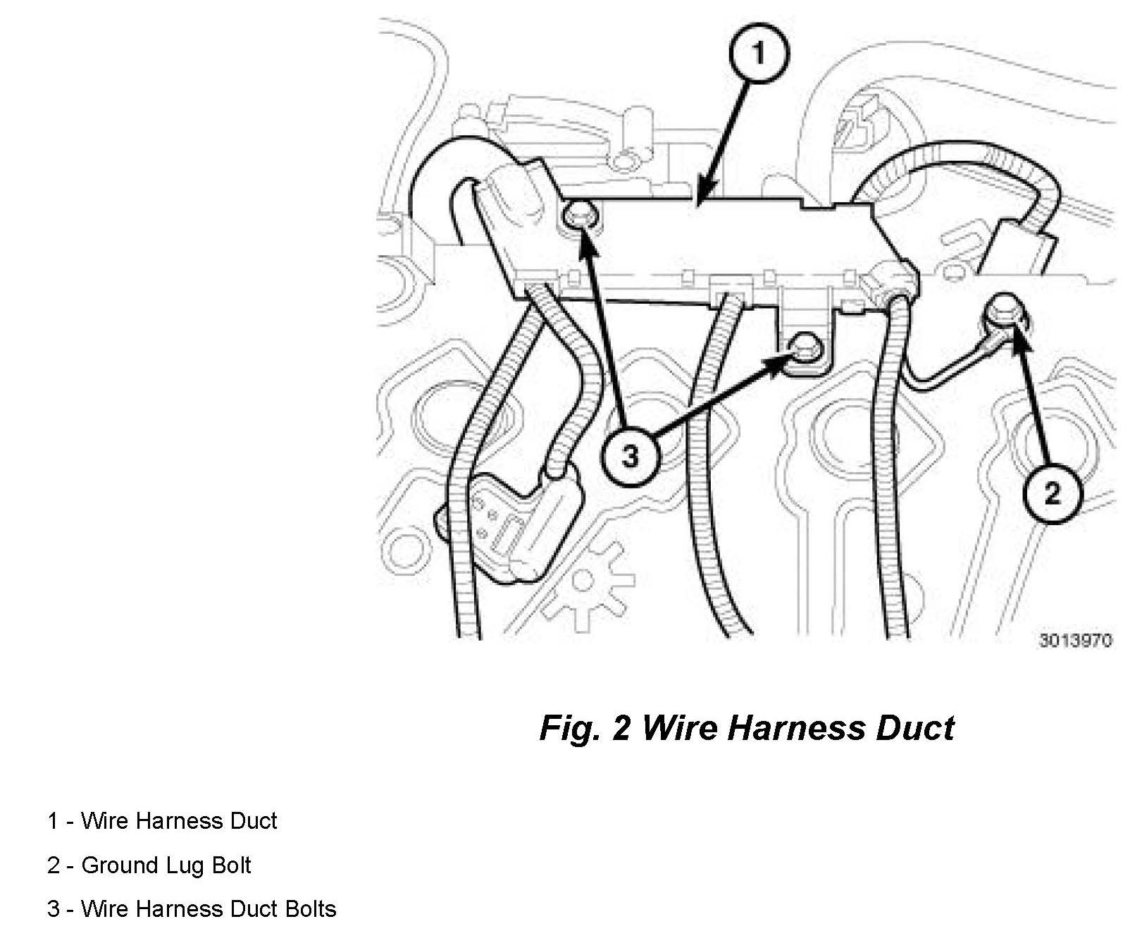 7. Remove two bolts (3) and reposition the wire harness duct (1) (Fig 2).