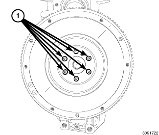 3. Install the flywheel-to-crankshaft bolts using a star pattern. Tighten to 15 Nm (11 ft.lbs.). Using a star pattern, tighten the bolts an additional 40 degrees.