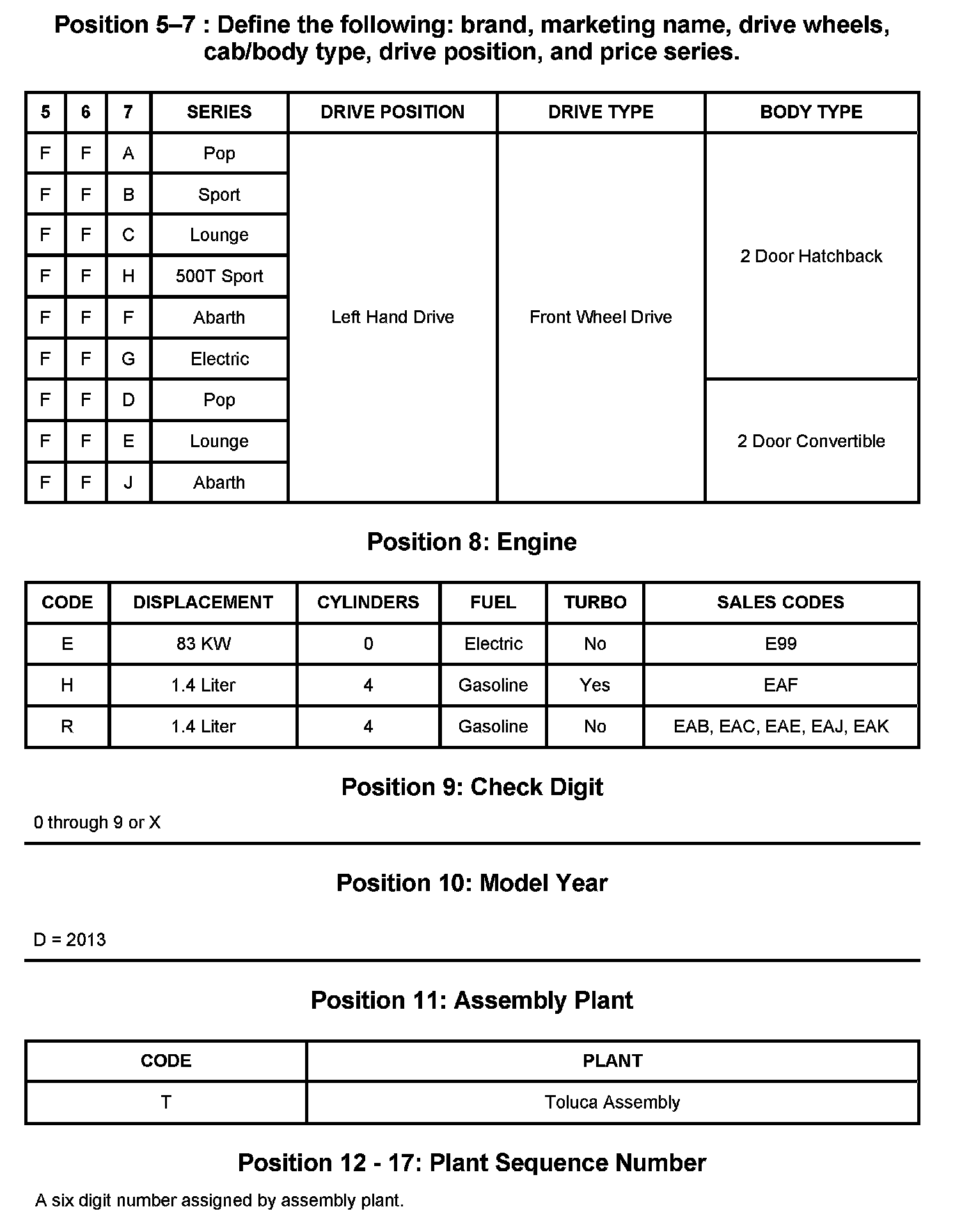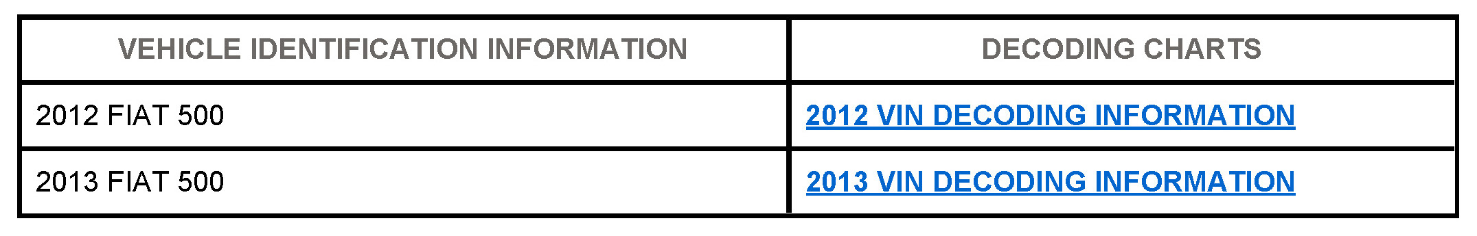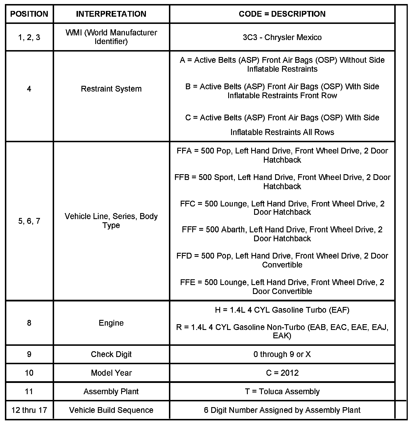 2012 VEHICLE IDENTIFICATION NUMBER DECODING CHART