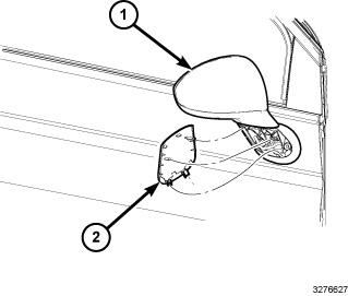 4. Install the exterior mirror trim cover (2).