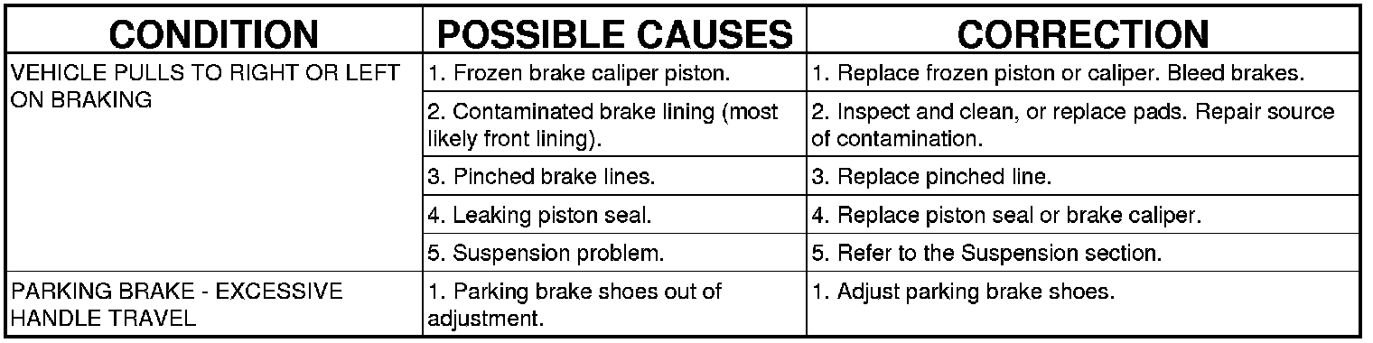 DIAGNOSIS AND TESTING - BASE BRAKE SYSTEM DIAGNOSIS CHARTS