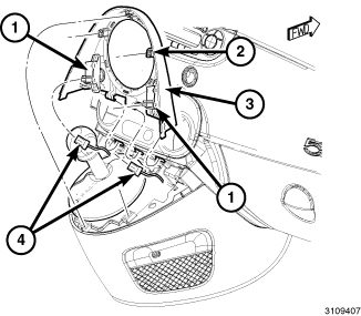 4. Position the bezel assembly; aligning the clips (2) with the console, and press into place.