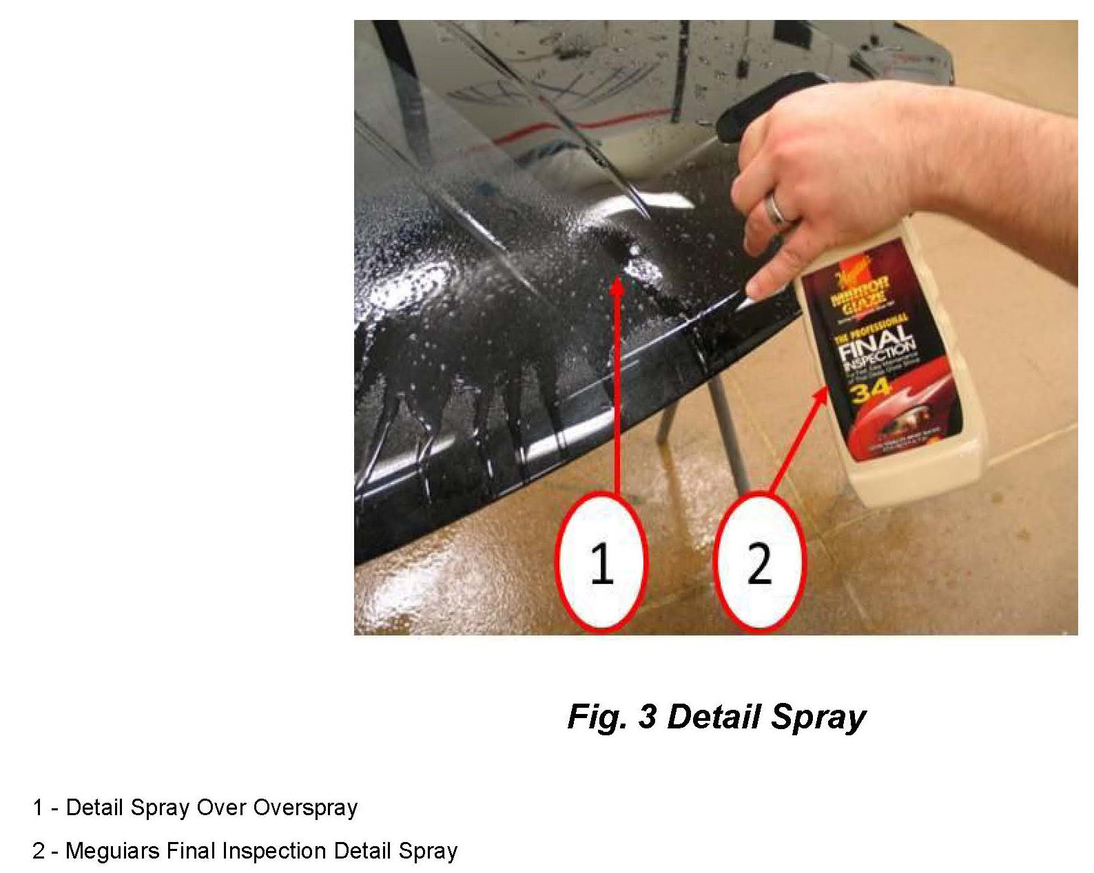 2. Work in a 12"(305mm) x12"(305mm) area at a time and apply Meguiars Final Inspection or a detail spray equivalent to the effected area (Fig. 3).