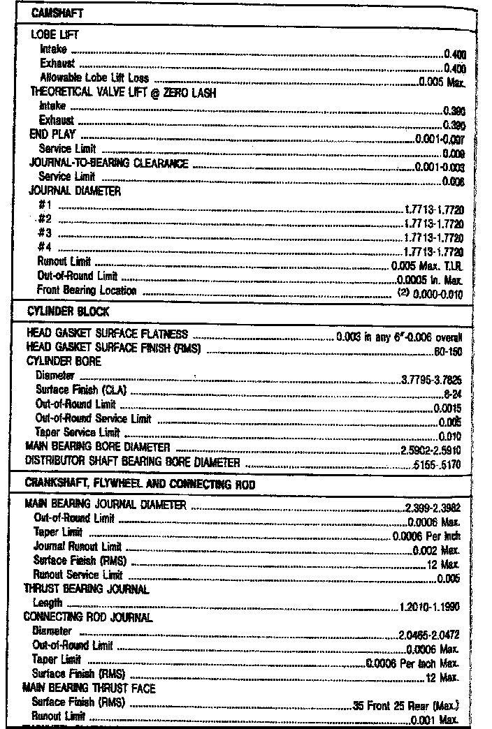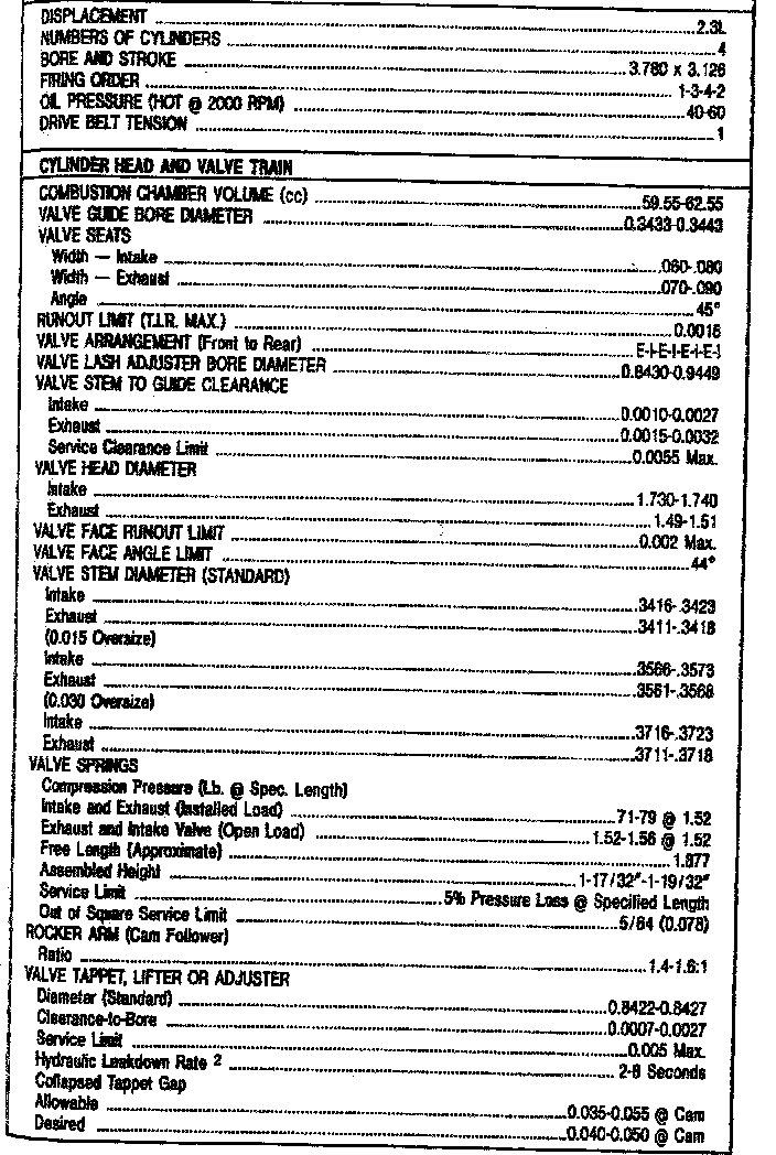 2.3L SOHC Engine Mechanical Data: