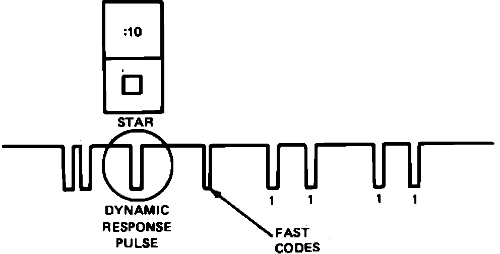 The dynamic response check verifies the movement of the TP, VAF and MAP sensors during the brief wide open throttle application performed during the engine running test. The signal for the test is a single pulse (on voltmeter) or code 10 on the STAR tester, Fig. 31.