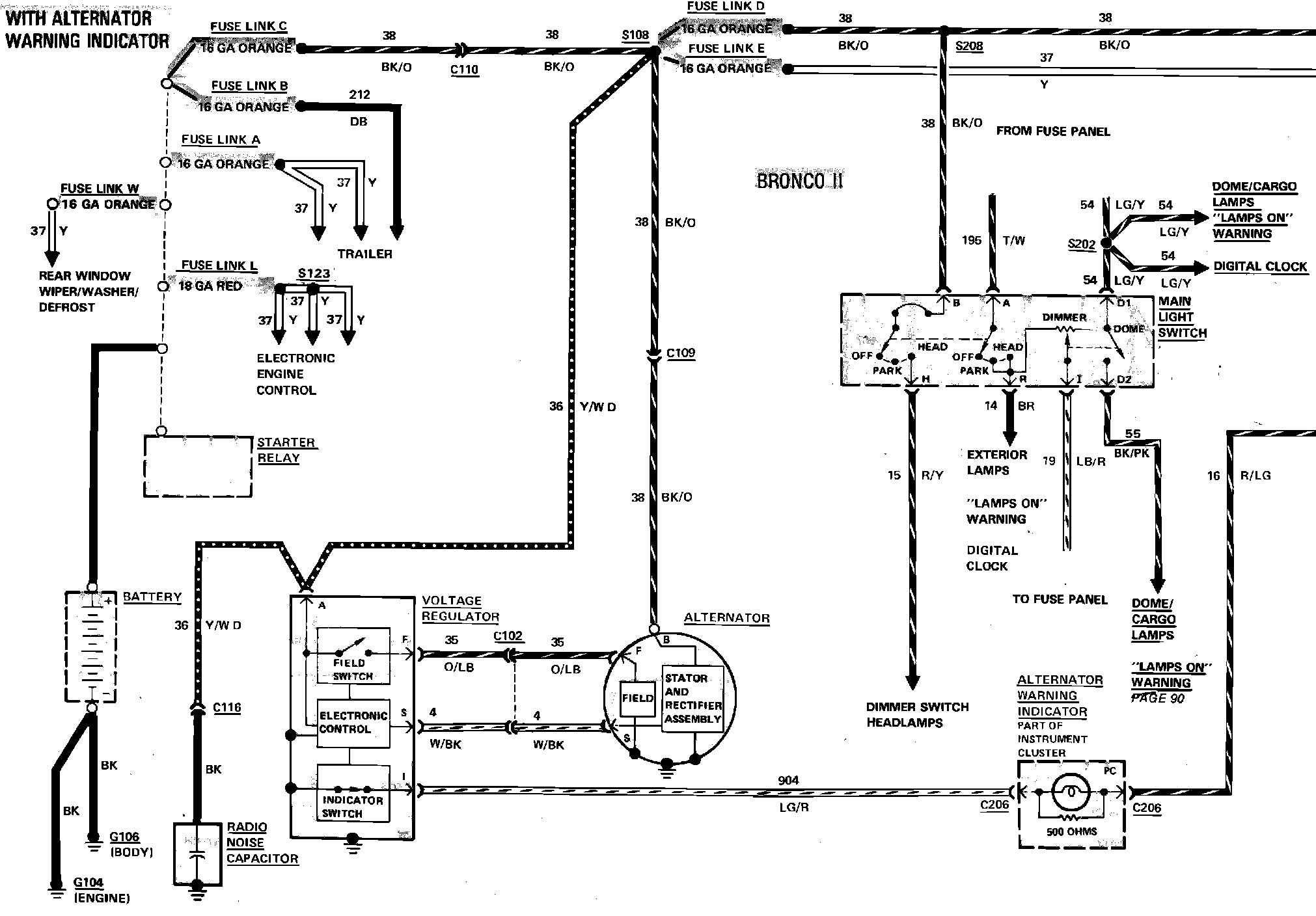 Fig. 14 Charging System & Power Distribution Wiring Circuit (Part 2 of 2). 1984 Bronco II Less Ammeter: