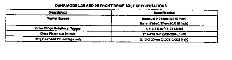 Dana 28/35, Front Drive Axle Clearances: