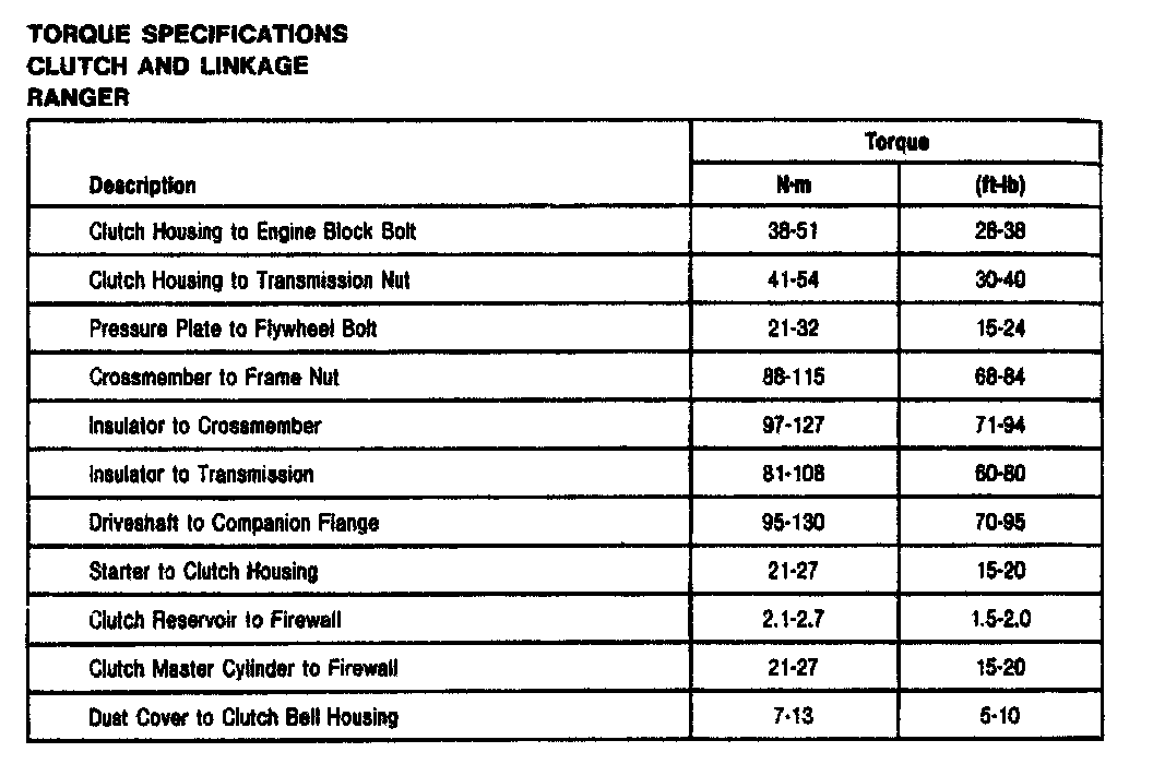 Four Speed M/T, Clutch/Linkage Torque: