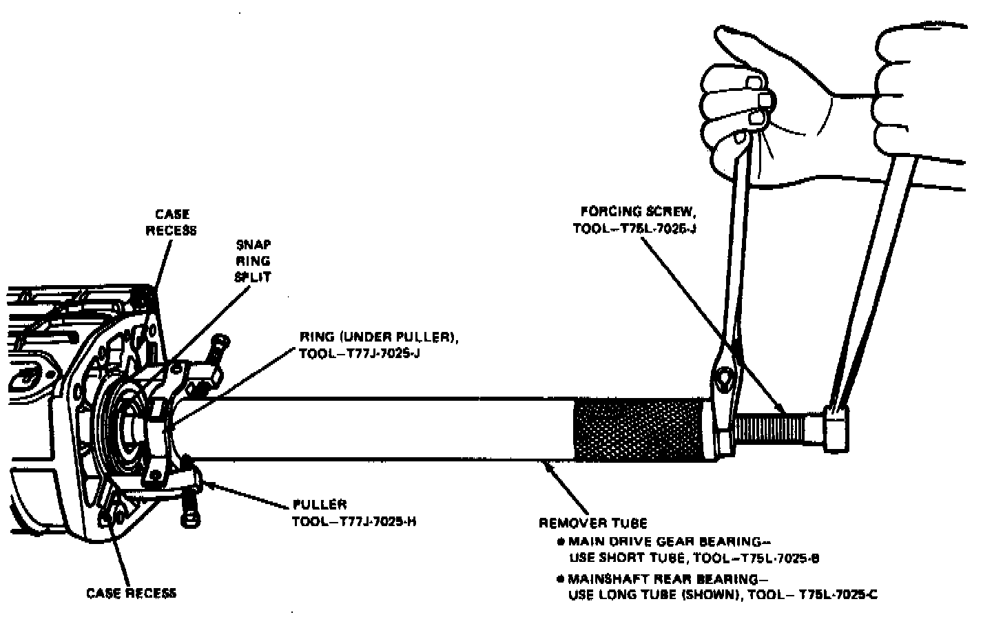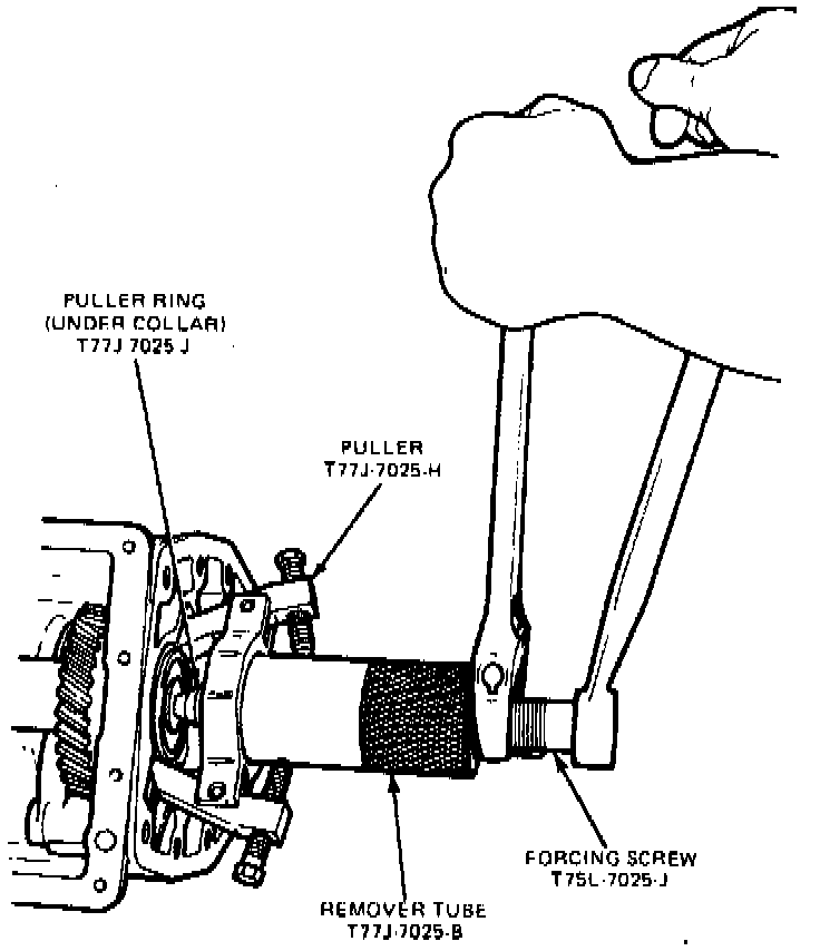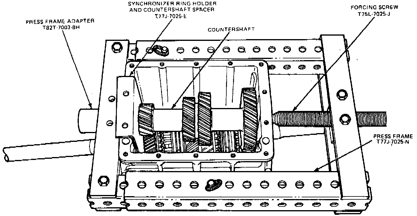 32. Turn forcing screw clockwise until countershaft contacts tool No. T77J-7025-E.