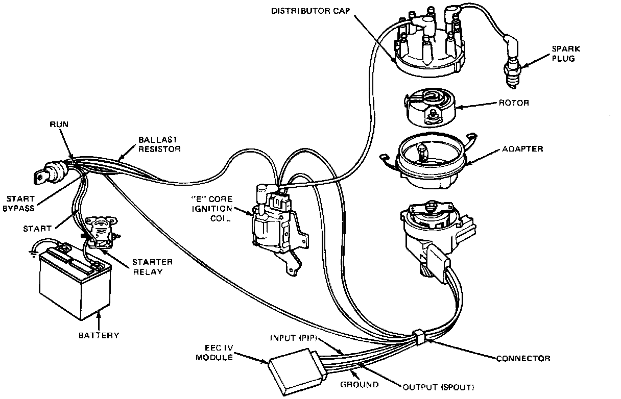 NOTE: This vehicle was available with either the Duraspark II or TFI ignition system depending upon calibration. Use the following to identify the ignition system.DS II:
