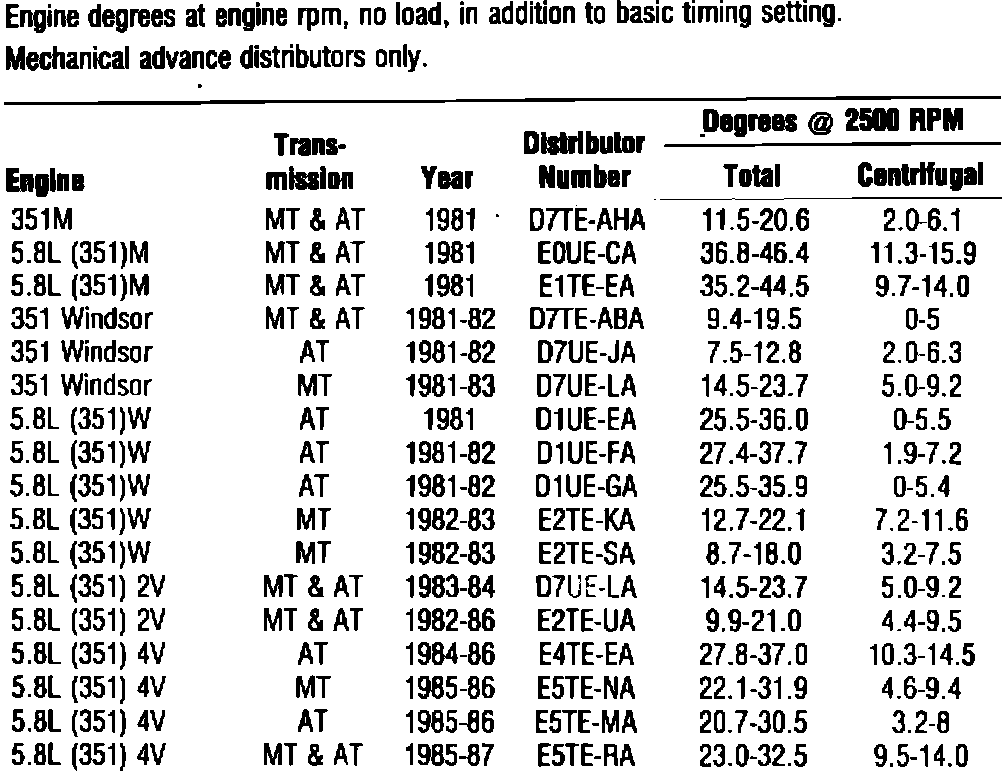 DISTRIBUTOR TIMING ADVANCE: