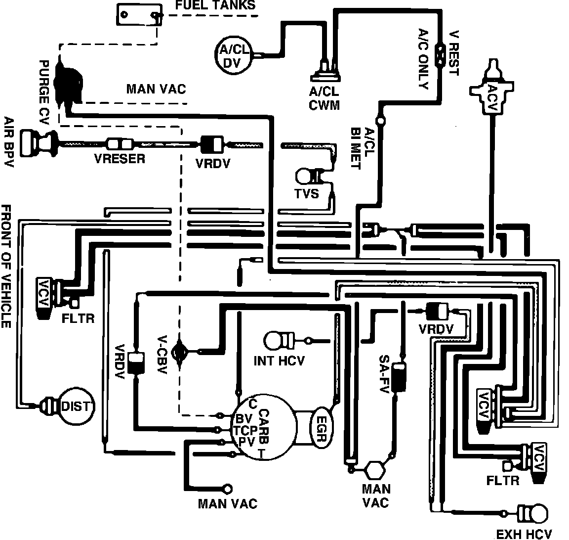 Fig. 111 Vacuum hose routing. 1984 V8-302 Calib. code 4-54E-R0: