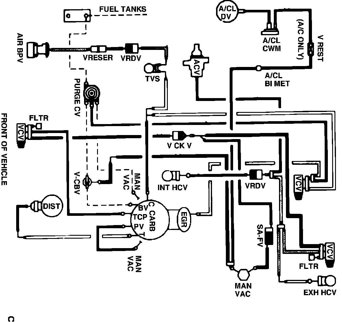 Fig. 118 Vacuum hose routing. 1984 V8-302 Calib. code 4-54L-R0: