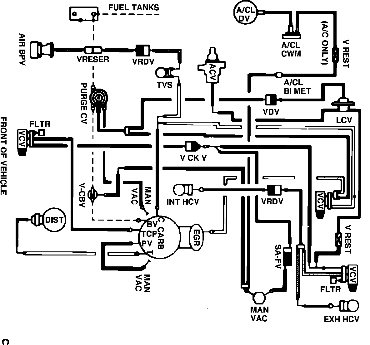 Fig. 128 Vacuum hose routing. 1984 V8-302 Calib. code 4-54W-R0: