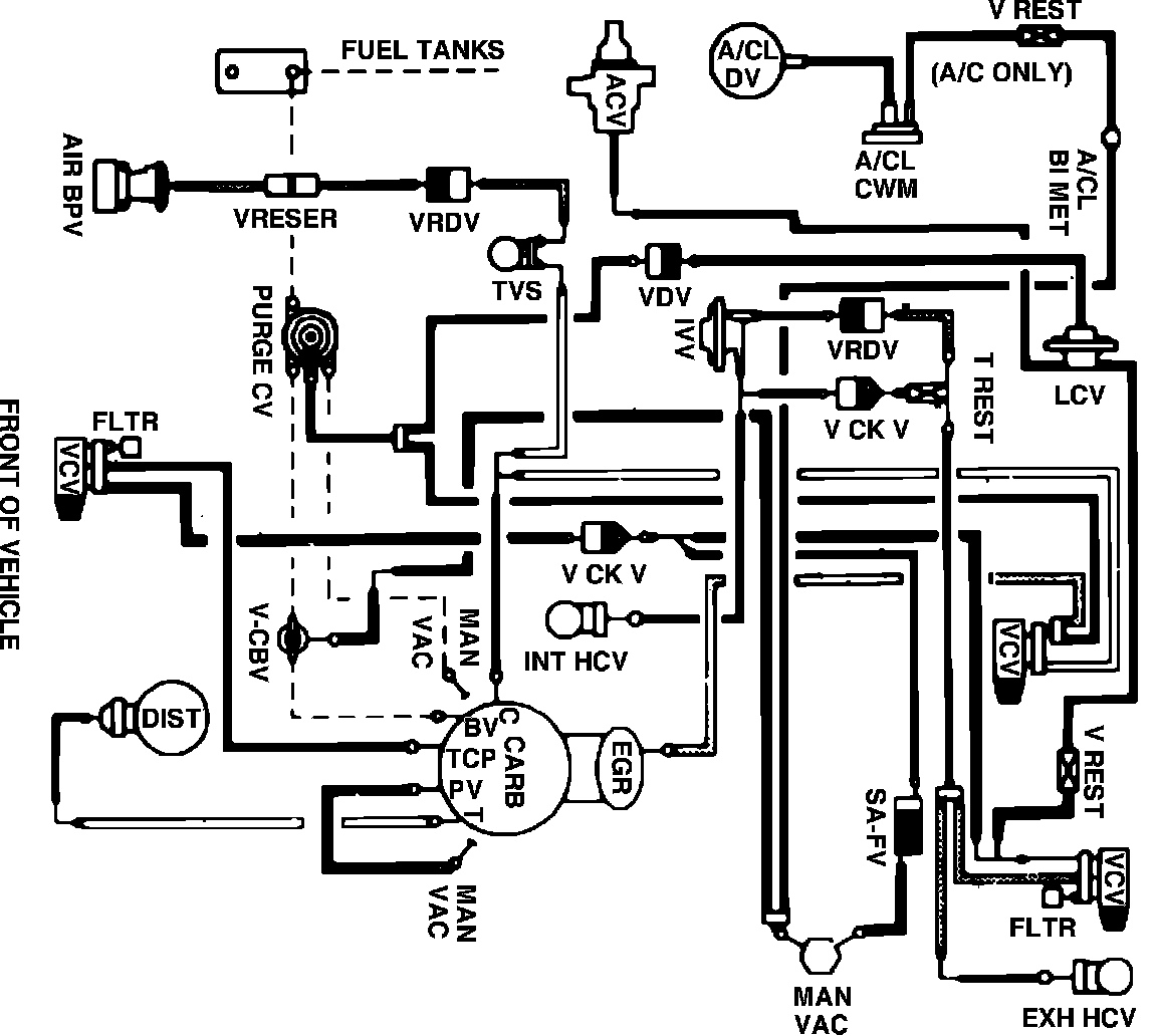 Fig. 130 Vacuum hose routing. 1984 V8-302 Calib. code 4-54W-R11: