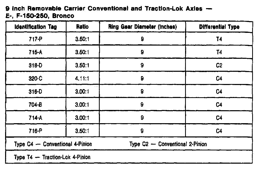 Ford 9.0 Inch/Trac Lok, Differential Data: