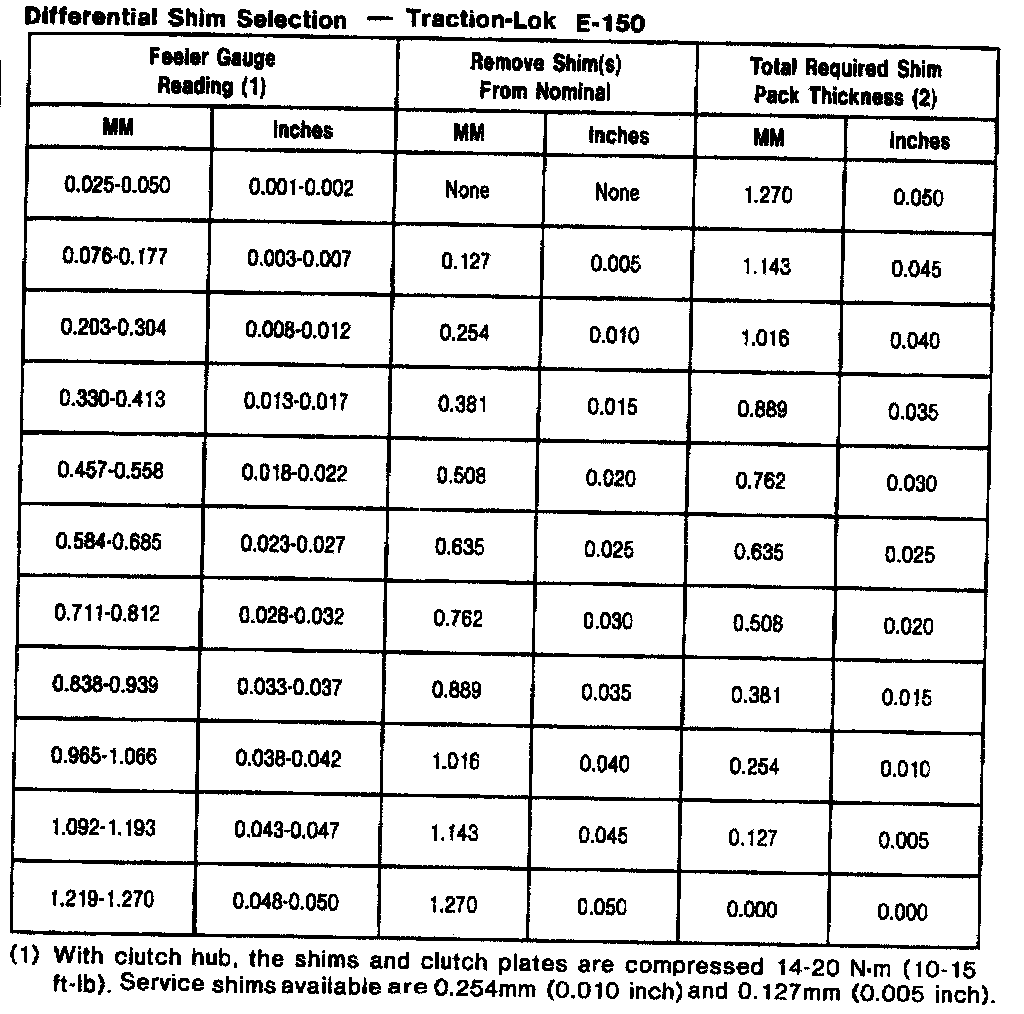 Ford Traction Lok 9.0, Differential Shim Chart: