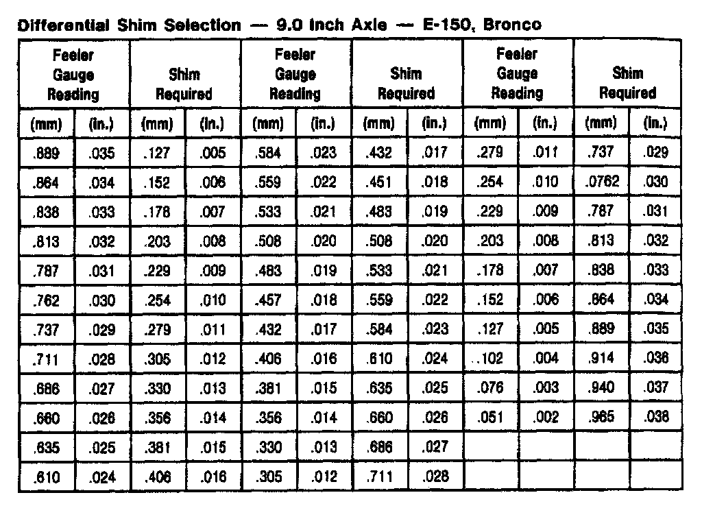 Ford 9.0 Inch, Pinion Preload (E-series):