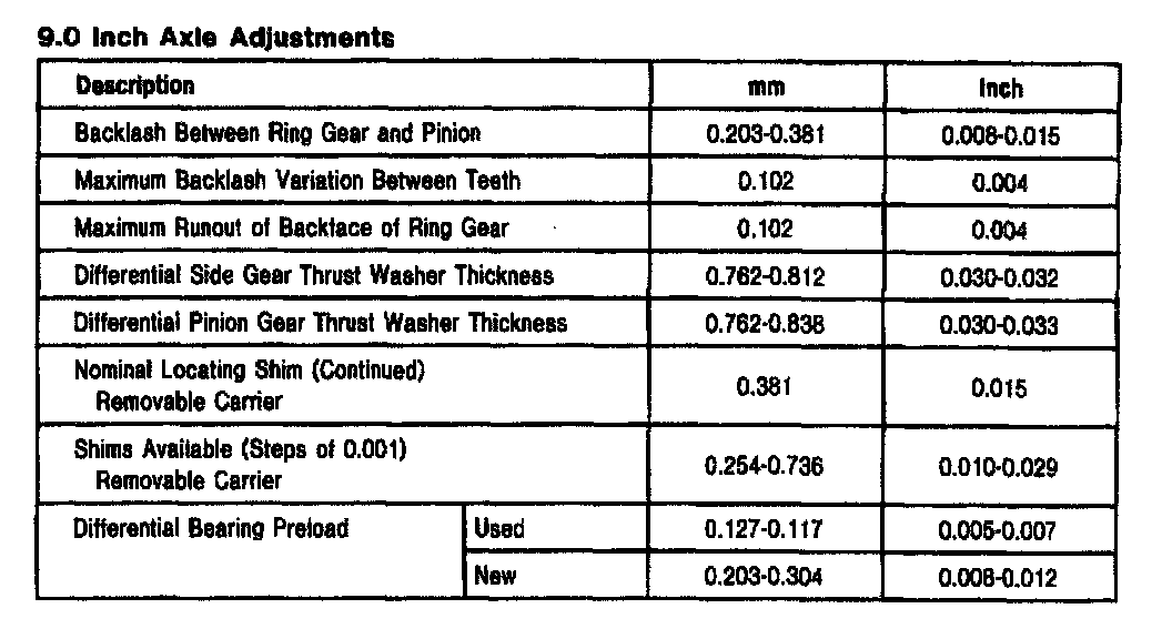 Ford 9.0 Inch/Trac Lok, Differential Data: