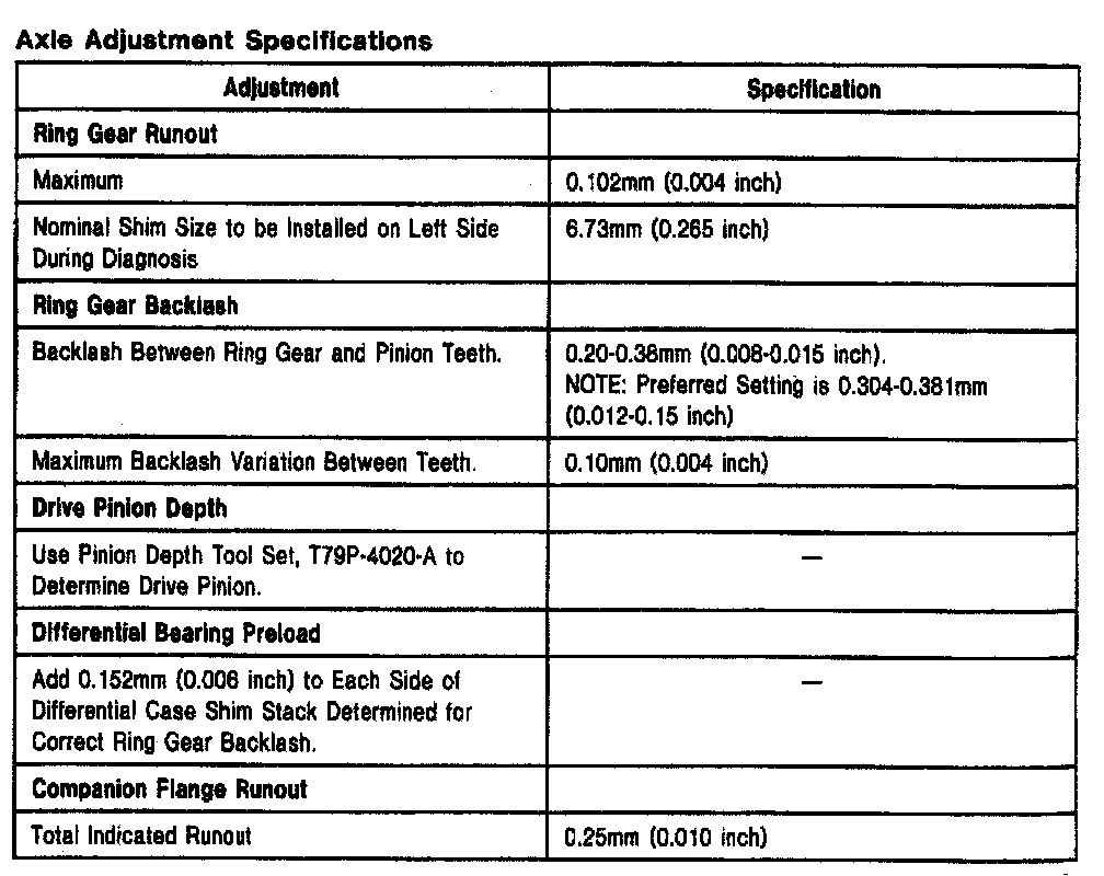 Ford 9.0 Inch, Ring Gear Runout/Backlash (E-series):