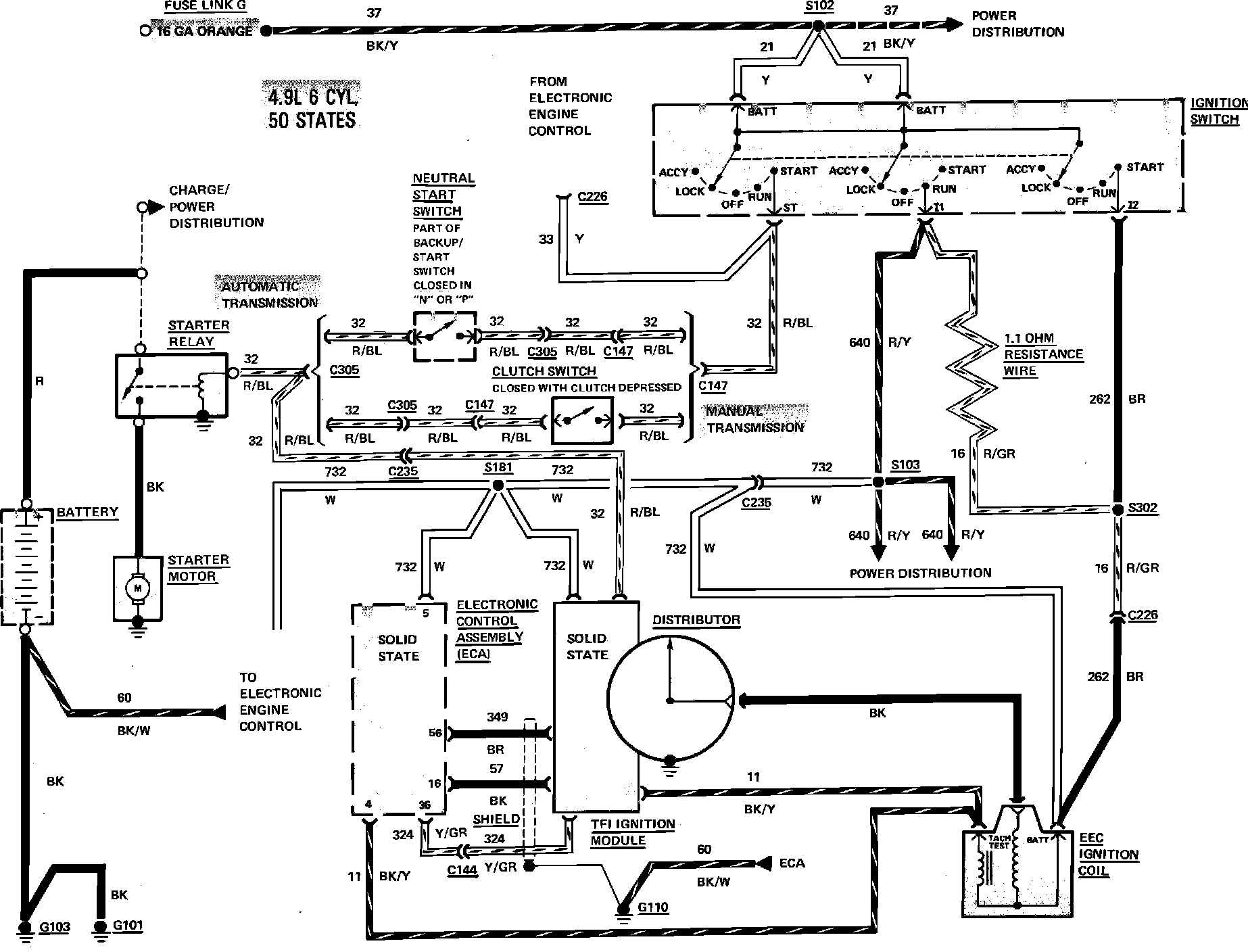 Fig.90 Ignition & starting 1984 Econoline with 6 cyl EEC: