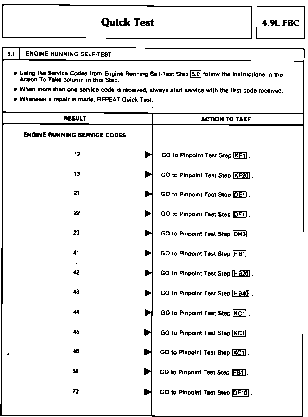 Engine Running Self Test And Service Codes 12 - 72 (4.9 FBC):