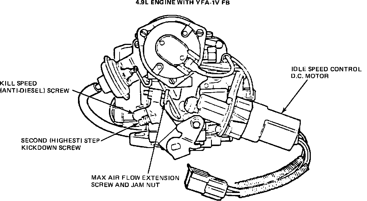 Numerous claims are being submitted by dealers concerning the 4.9L idle speed control system. Often, these claims are not diagnosed using the correct procedures concerning high or low idles, and are not catalogued correctly. If the service procedures resulted in incorrect carburetor adjustments, further performance complications can be introduced by the misadjustment while leaving the original cause of the concern unresolved.