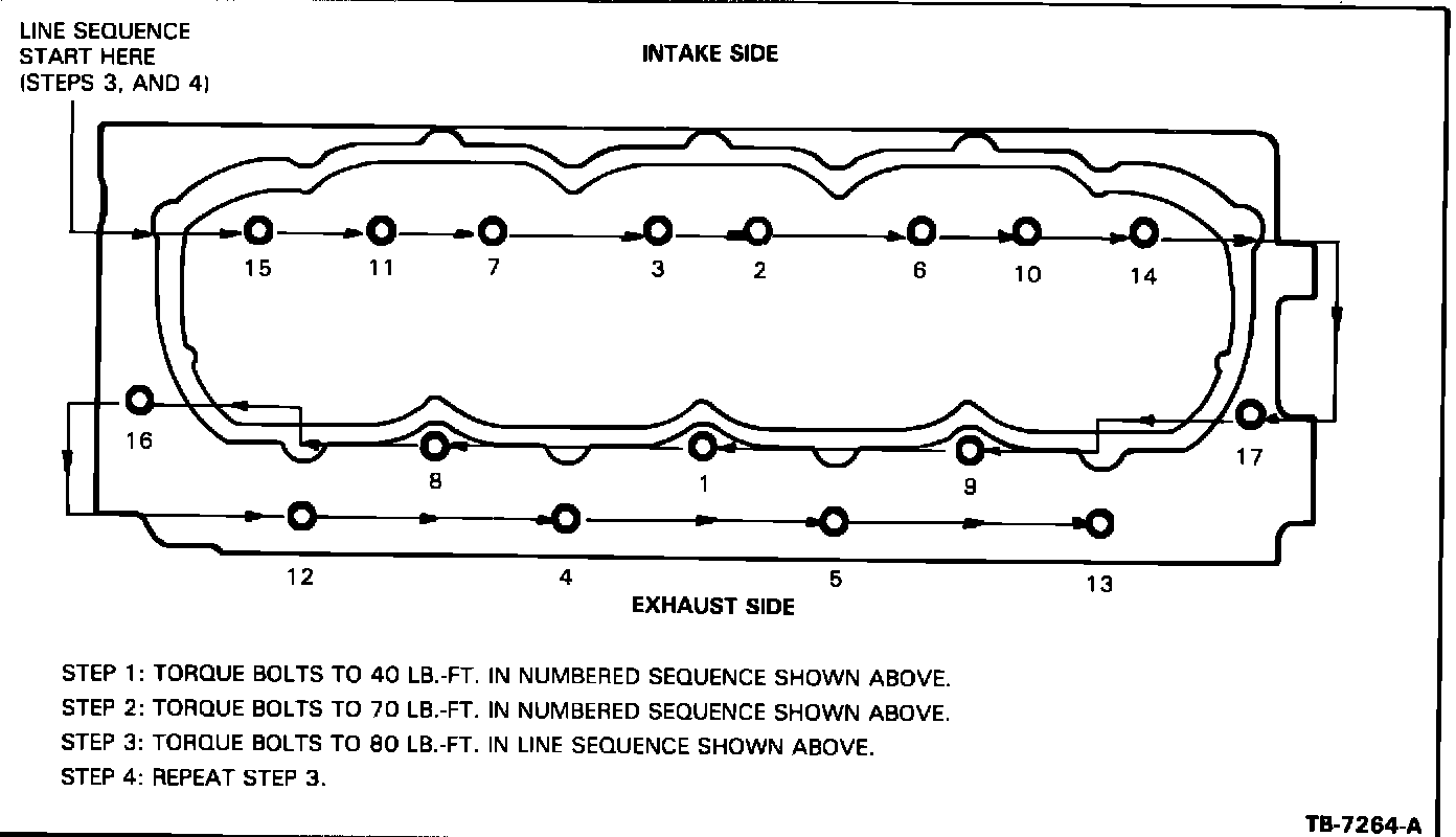 The maximum cylinder head bolt torque is increased to 80 ft.lbs. (108 N-m). The torque sequence remains the same as previously published (Figure 16).