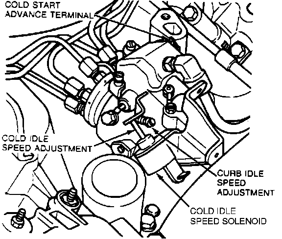 5. Check fast idle speed setting. Fast idle speed should be 875 +/- 25 rpm