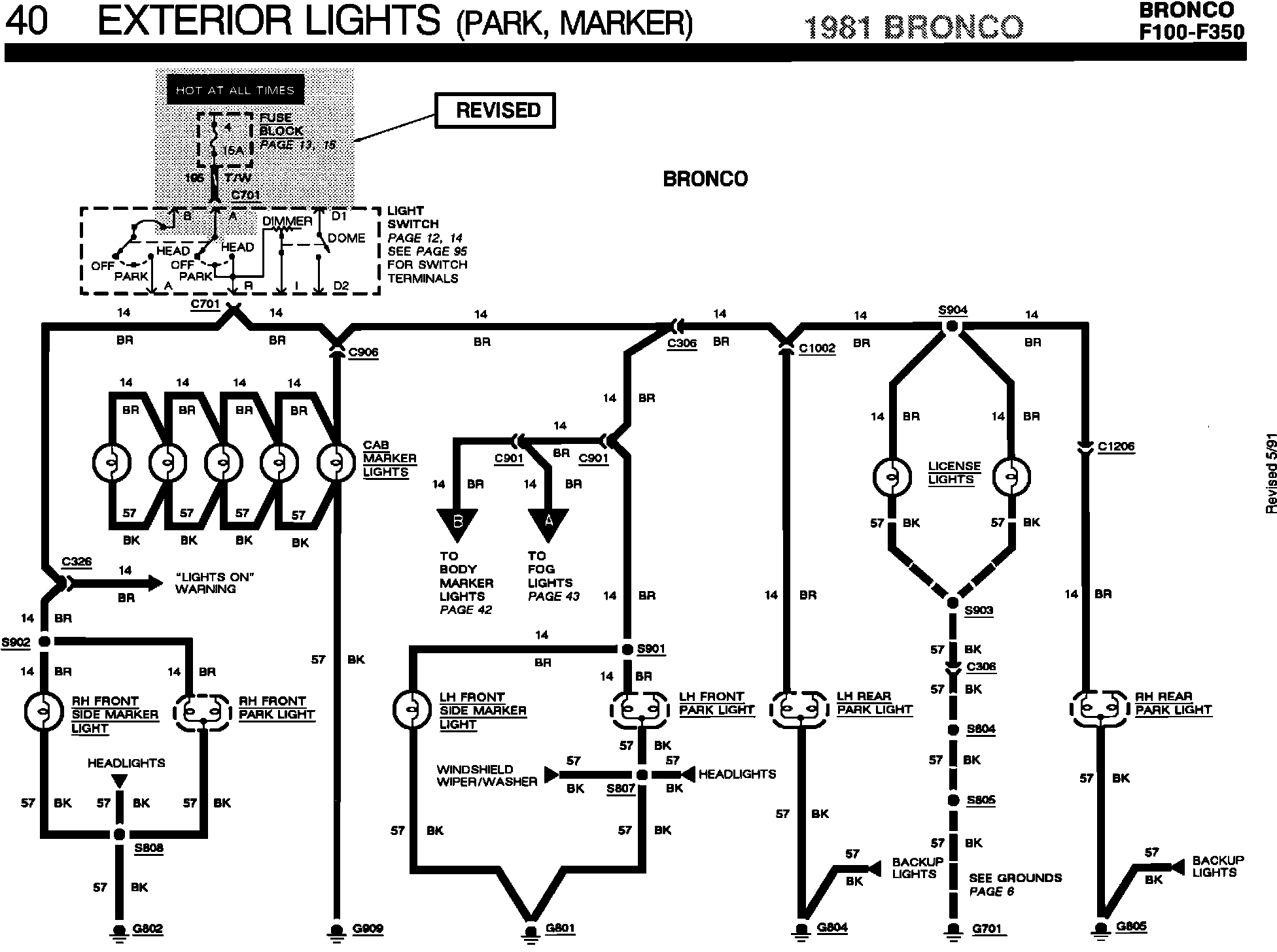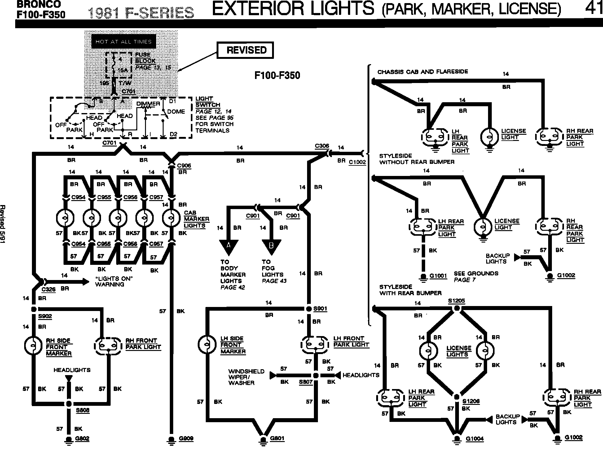 ^ ELECTRICAL/VACUUM TROUBLESHOOTING MANUAL - 1981 - PAGES 40 AND 41 - EXTERIOR LIGHTS CONNECTIONS TO LIGHT SWITCH REVISED