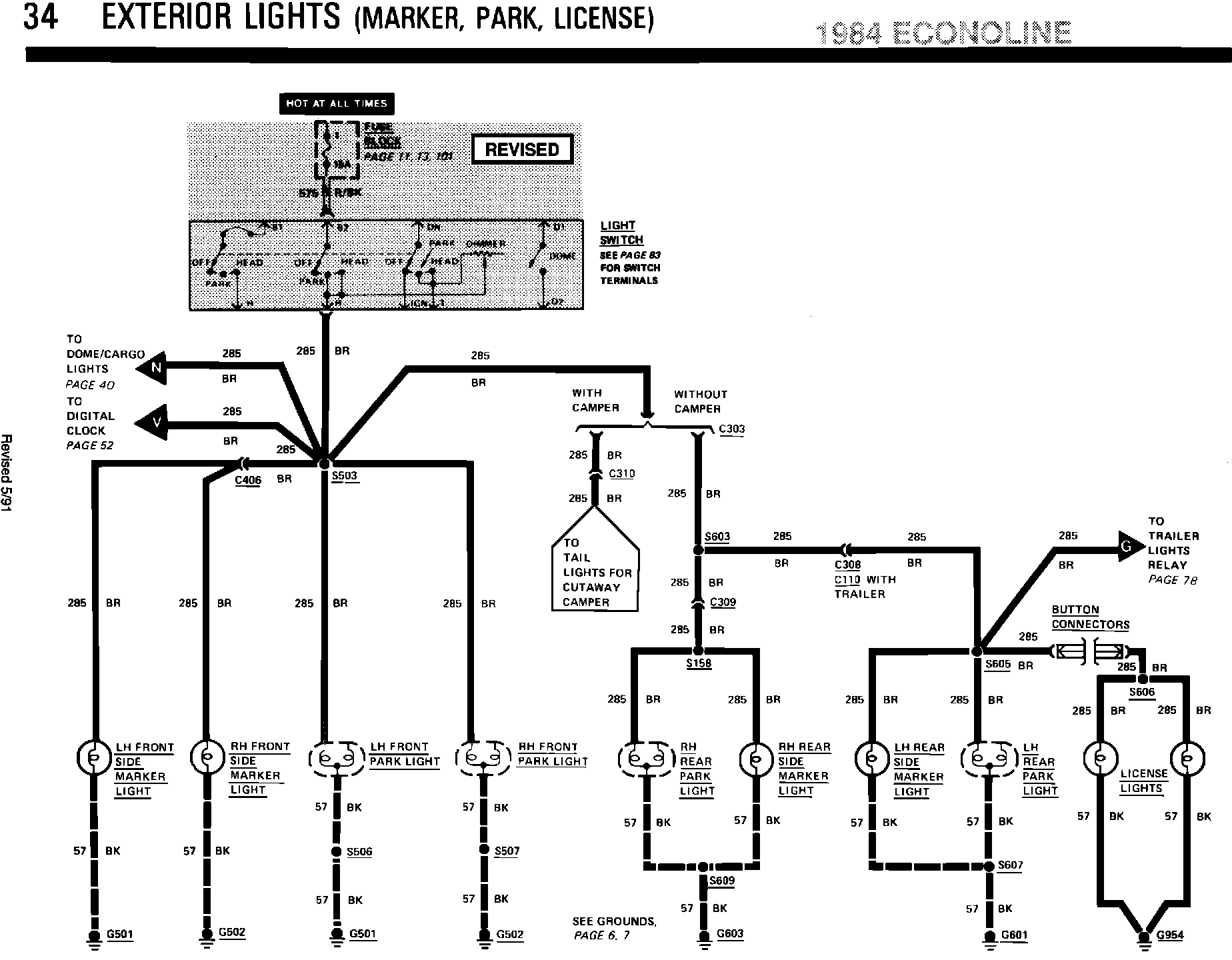 ^ ELECTRICAL/VACUUM TROUBLESHOOTING MANUAL - 1984 - PAGE 34 - EXTERIOR LIGHTS CONNECTIONS TO LIGHT SWITCH REVISED
