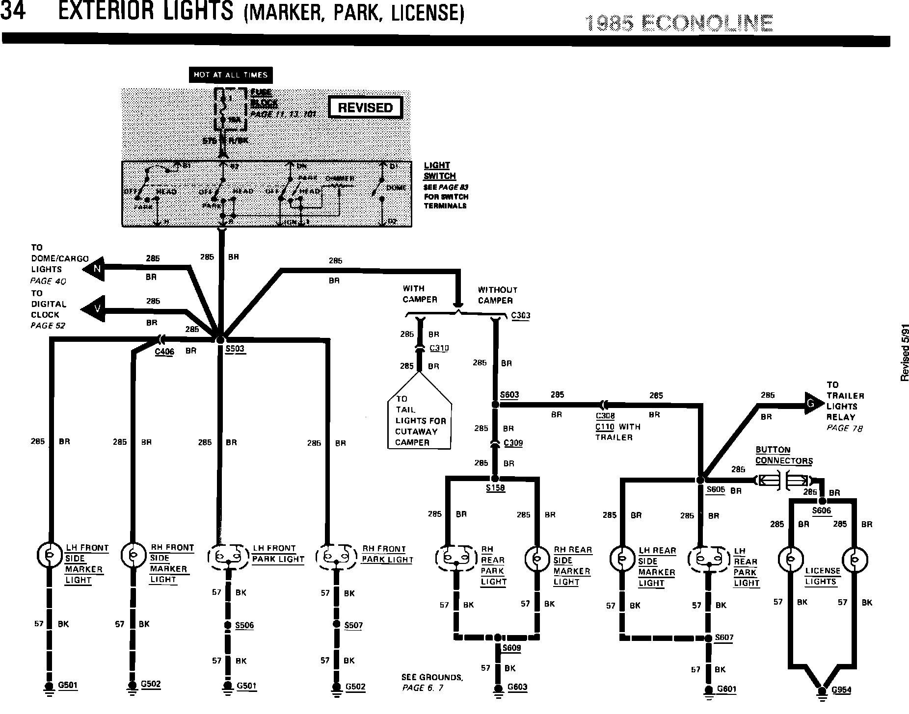 ^ ELECTRICAL/VACUUM TROUBLESHOOTING MANUAL - 1985 - PAGE 34 - EXTERIOR LIGHTS CONNECTIONS TO LIGHT SWITCH REVISED