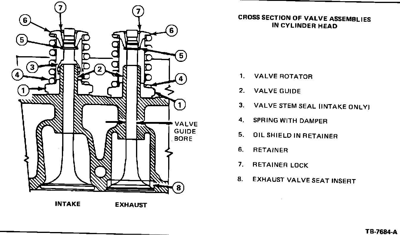 described in Shop Manual. Inspect valve retainer locks for excessive wear, and replace in pairs, as necessary. When installing a new valve, always use new retainer locks.