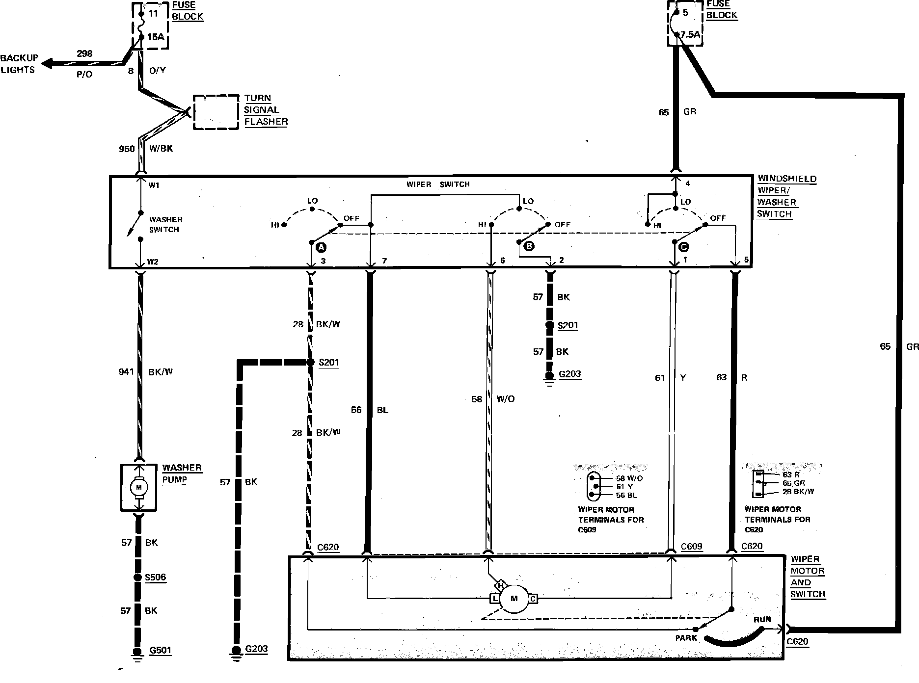 Fig. 131 Windshield wiper & washer wiring circuit. 1983-84 Econoline less intermittent wipers: