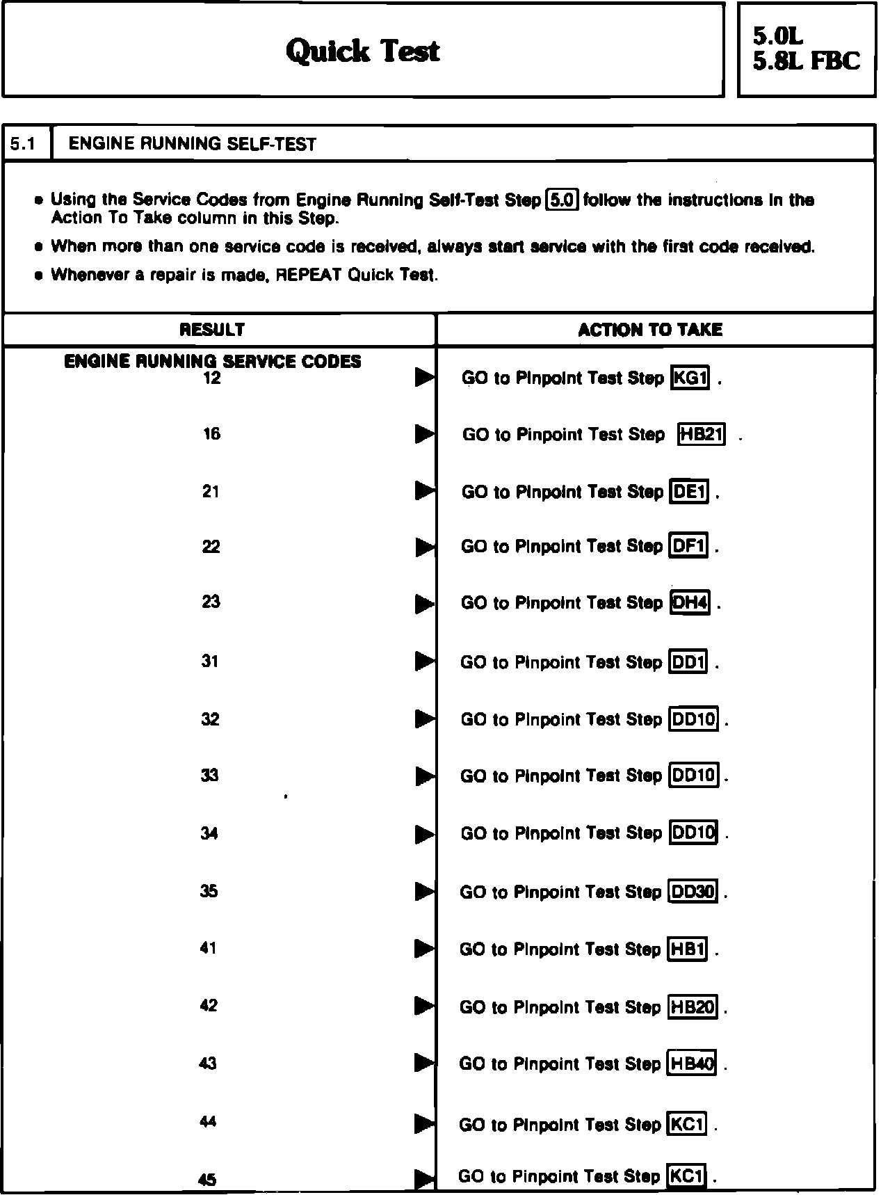 Engine Running Self Test And Service Codes 12 - 45 (5.0 & 5.8 FBC):