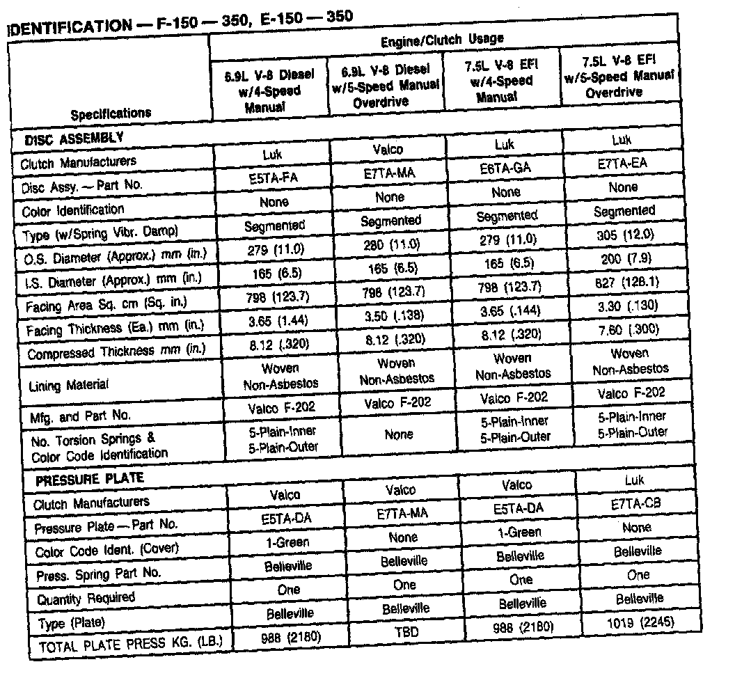 New Process 435 4-spd M/T, Clutch Usage (E/F Series 6.9L, 7.5L):