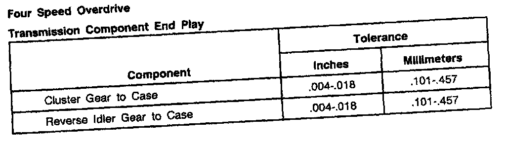 Ford Overdrive 4-spd M/T, Transmission End Play: