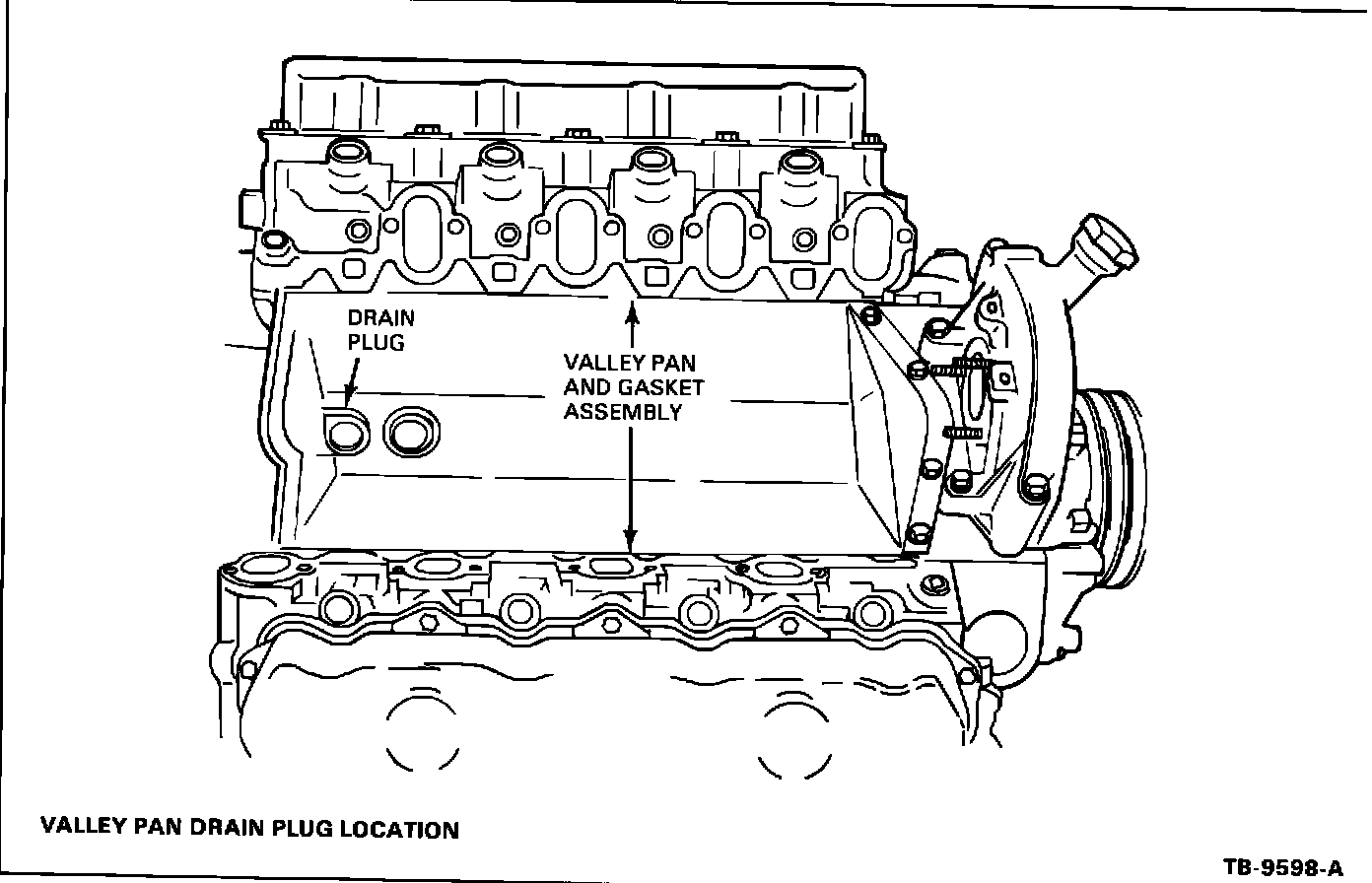 2. Remove the valley pan and gasket from the cylinder block.