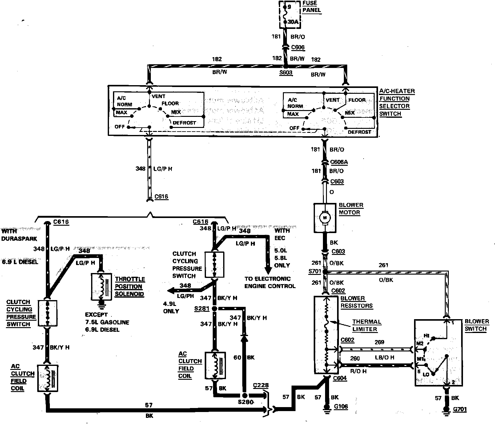 Fig. 11 Air conditioning & heater wiring circuit. 1984 Bronco & F100-350: