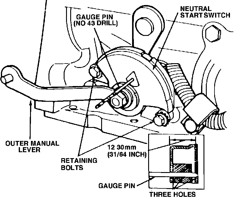 7. Tighten switch attaching bolts, then remove gauge pin.