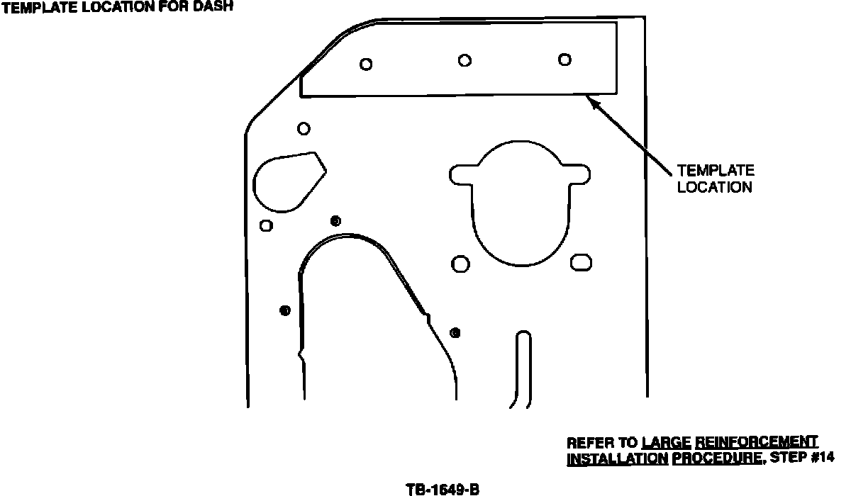 13. Attach the smaller plate via the three threaded holes into the engine compartment side of the dash inner panel.