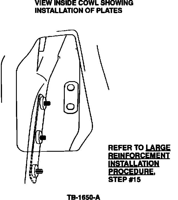 c. Position the plate with the two studs attached inside the cowl, through the two holes drilled from below.