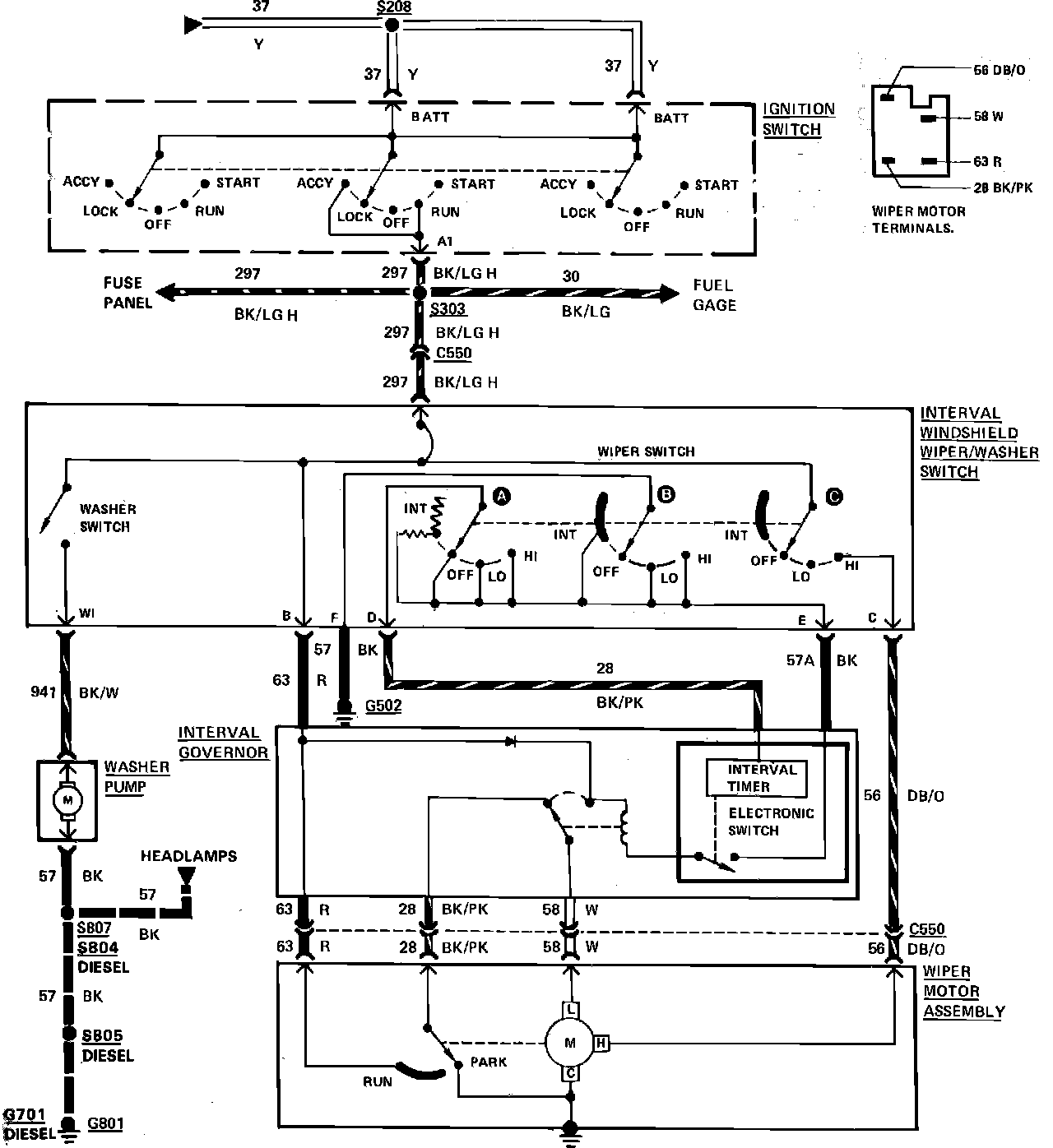 Fig. 134 Windshield wiper & washer wiring circuit. 1984 Bronco & F100-350 with intermittent wipers: