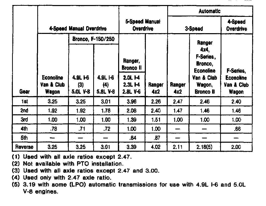 Borg-Warner T18 4-spd M/T, Clutch Usage (F150-250/Bronco):