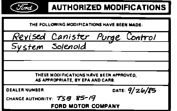 Obtain an Authorized Modifications Decal and list the date, dealer number, and summary of alterations performed. Select a prominent place adjacent to the Vehicle Emission Control Information Decal suitable for installing the Authorized Modifications Decal. Clean the area, install the decal, and cover it with a clear plastic decal shield.