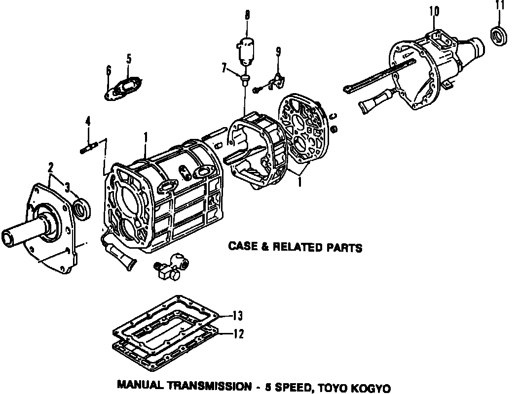 Case & Related Parts, 5 Speed, Toyo Kogyo, Down Size: