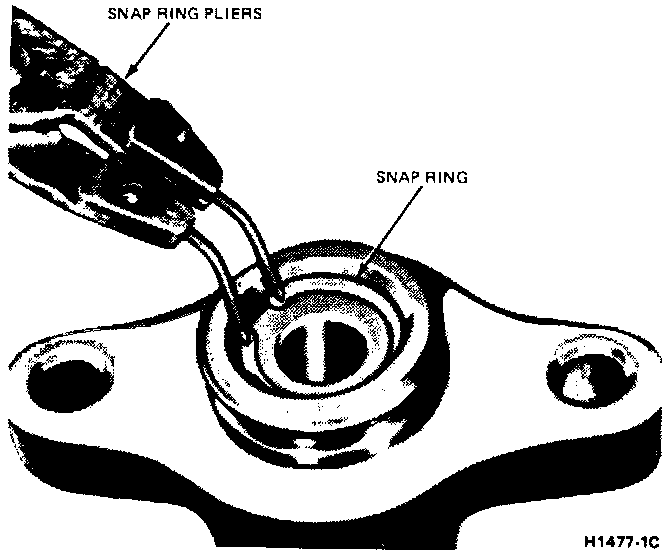 2. Depress the primary piston and remove snap ring from retaining groove at the rear of the master cylinder bore.